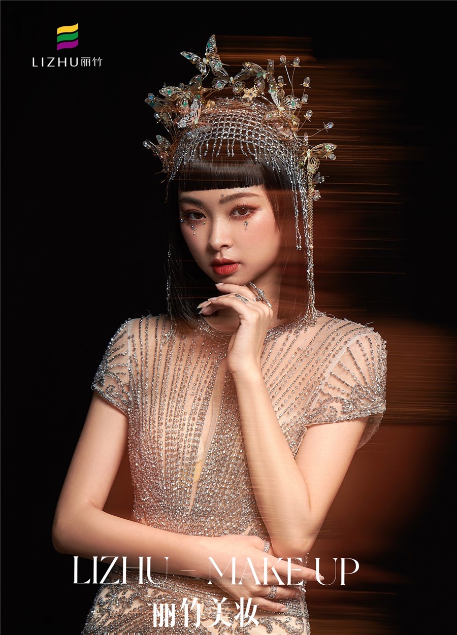 麗竹化妝學(xué)校作品---輕奢復(fù)古造型:奢華透視薄紗款禮服,勾勒出婀娜曼妙的身姿,頭飾與服飾滿鉆的鑲嵌,閃爍波光粼粼的神秘感,如夢(mèng)如幻間與現(xiàn)實(shí)交替!