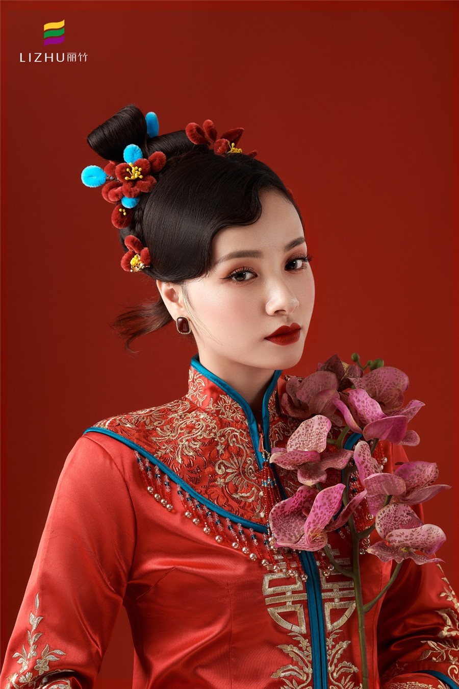 朱砂紅打造的精致頭飾