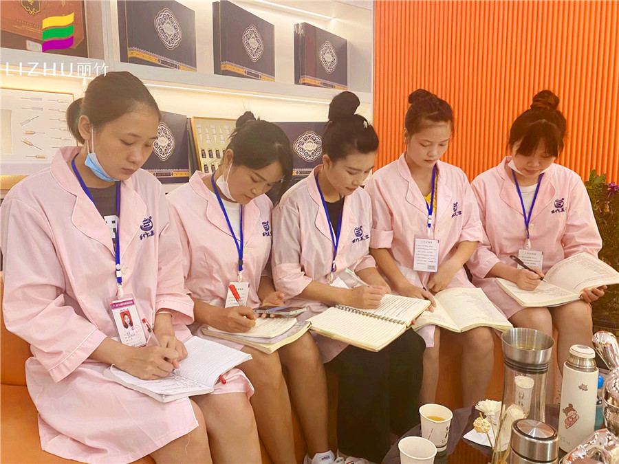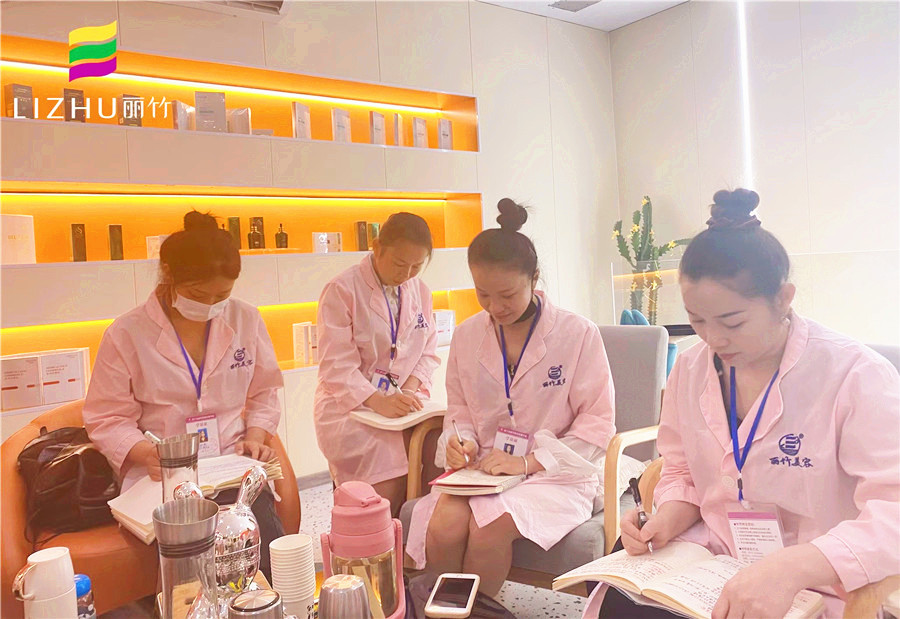 參觀完店面的環(huán)境后,學員們便開始了接下來為期5天的到店實習培訓學習。早上進行的課程是崗前培訓的一些理論知識,以及店面開設(shè)項目的手法概述以及招待禮儀。想要檢驗技能掌握的熟悉程度,就必須通過實踐去體現(xiàn)出來。于是,下午的課程學員們將會投入到真正的工作中,去鍛煉和提升技術(shù)。