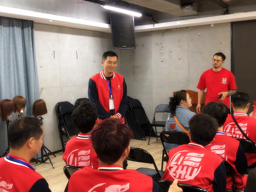 為了讓同學(xué)們提前感受美之浪對員工的培訓(xùn)標(biāo)準(zhǔn),以及美發(fā)師需要的形象儀態(tài)和接待話術(shù),國總現(xiàn)場組織同學(xué)們展開了一場自我介紹的話術(shù)情景模擬。