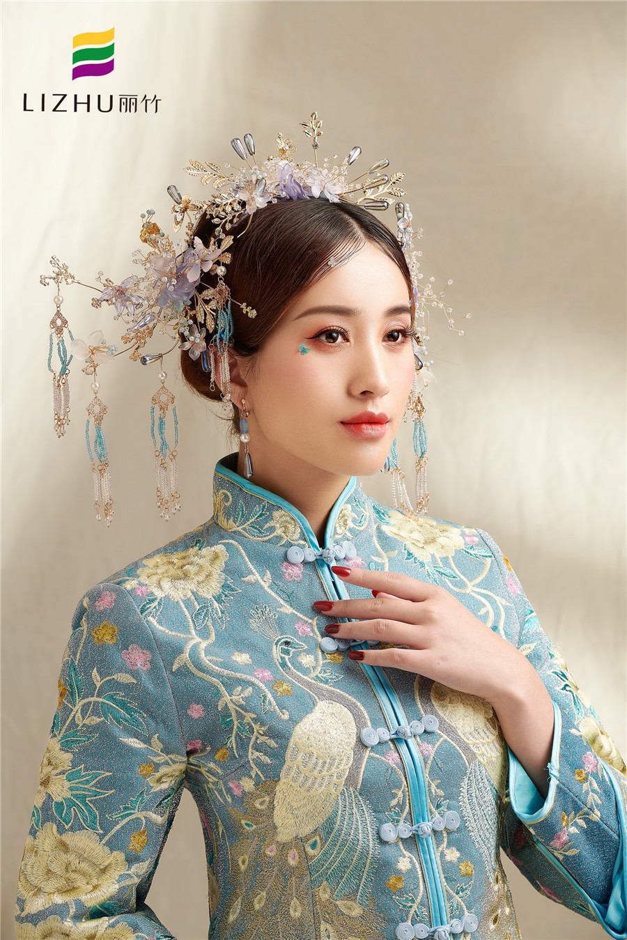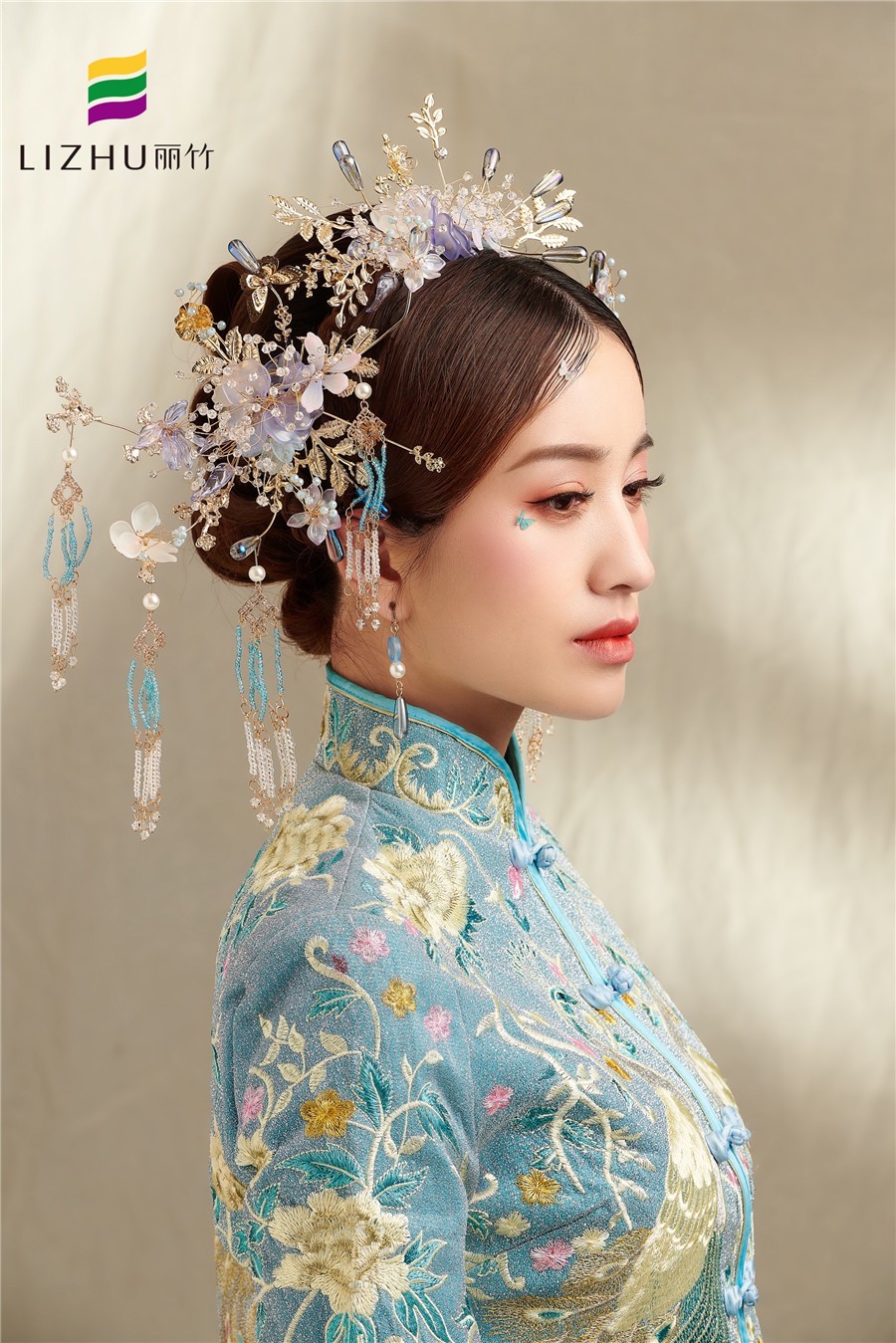 南寧受歡迎的化妝學(xué)校(麗竹學(xué)校)彩妝作品:中國藍秀禾新娘造型