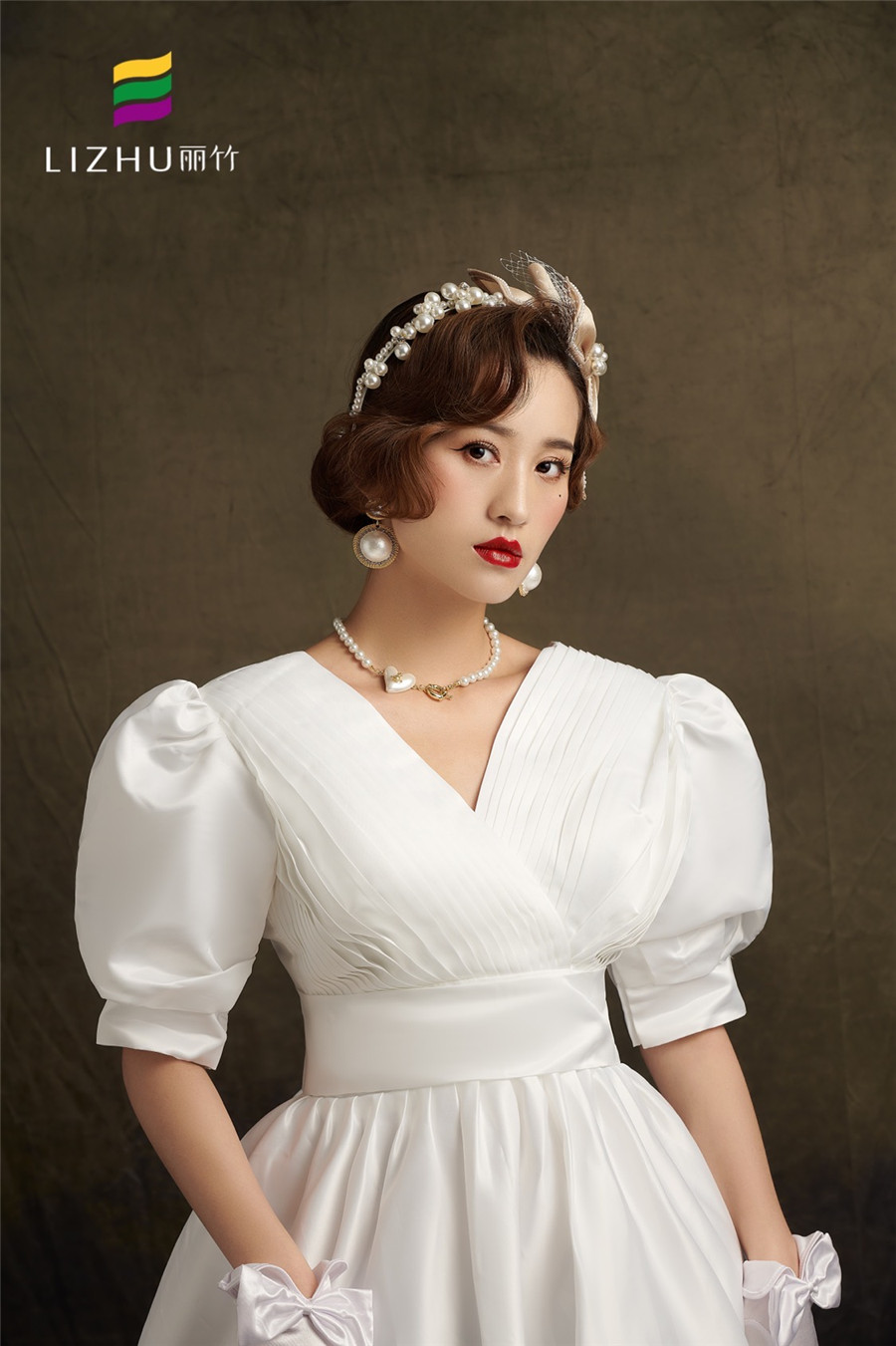 南寧化妝培訓學校作品---輕復古新娘系列:時尚優(yōu)雅盤發(fā),大氣動人麗人妝,緞面氣質婚紗,純潔優(yōu)雅。