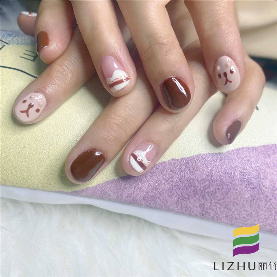 南寧學(xué)美甲的學(xué)校作品:短圓指甲卡通款美甲(一)
