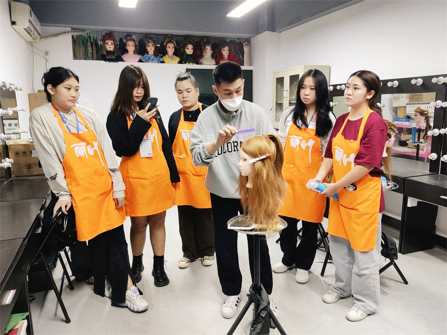 針對零基礎(chǔ)學(xué)員學(xué)習(xí),采用假模頭實操示范上課練習(xí),以盤扎發(fā)型技術(shù)為主,了解臉型與發(fā)型的關(guān)系,包括從基本的頭發(fā)的認識、分區(qū)、倒梳、疊、卷、扭、包、辮等手法,各種場合的造型運用,掌握不同盤扎造型技術(shù)。