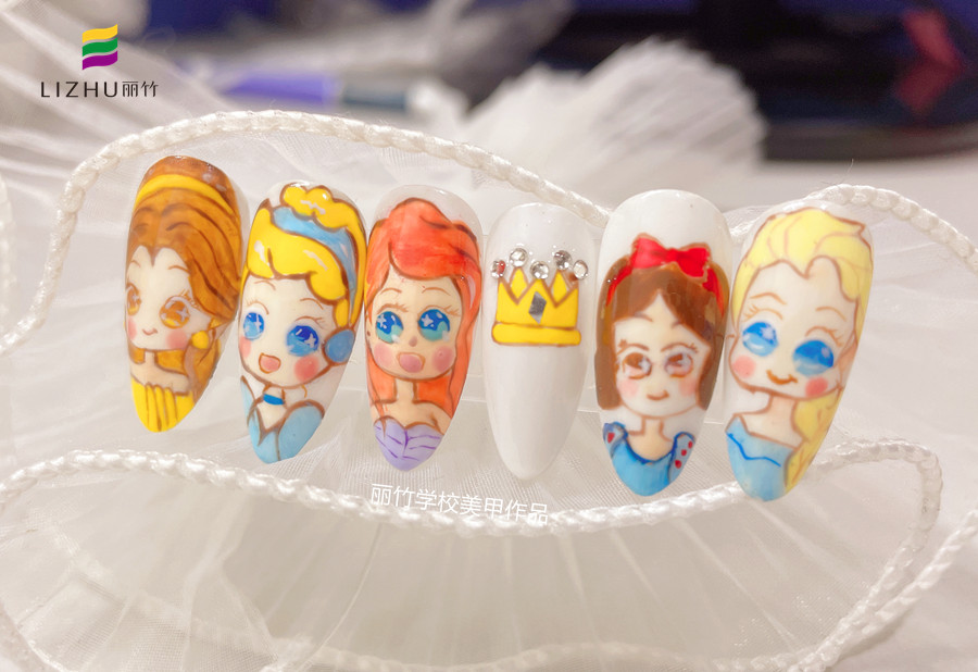 廣西美甲師進(jìn)修班、廣西培訓(xùn)美甲機(jī)構(gòu)分享:卡通不僅是小朋友們的專屬,對(duì)于成年人來(lái)說(shuō)一樣是可以慰藉我們心靈的美好童話。奔波與忙碌的生活與工作中,何不通過(guò)一片片小小的甲片,將心中那份對(duì)于童話故事的憧憬繪制出來(lái)呢?每個(gè)人都是自己的小公主,小可愛(ài),下面就看看廣西南寧美甲學(xué)校-麗竹美甲學(xué)校為你繪制的可愛(ài)卡通美甲作品---迪士尼公主美甲 & 可愛(ài)熊雕花美甲。