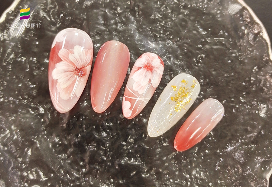 廣西美甲職業(yè)培訓學校作品-春日彩繪花朵美甲(一)