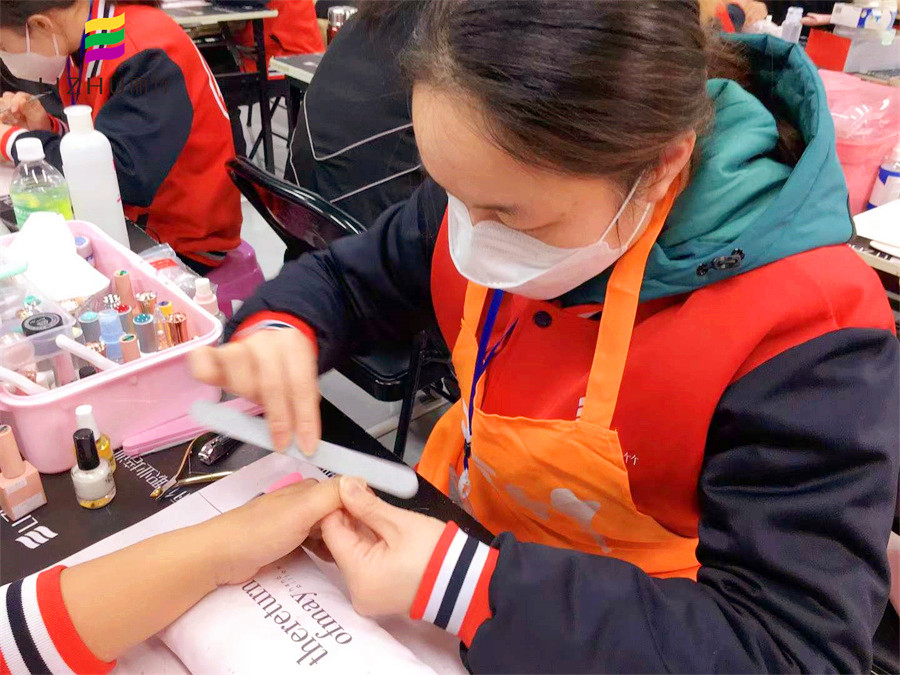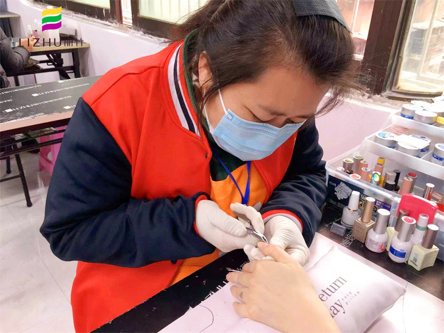 南寧美甲學(xué)習(xí)機(jī)構(gòu)學(xué)員使用專業(yè)卸甲工具進(jìn)行卸甲練習(xí)