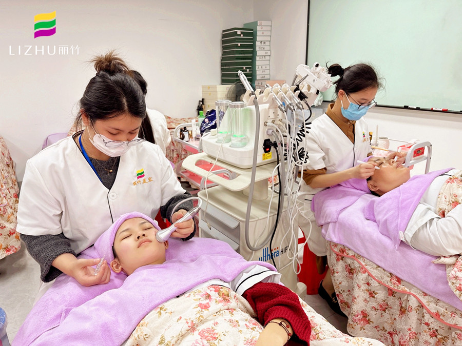 南寧皮膚管理全科班學(xué)員用美容儀器進行真人實操