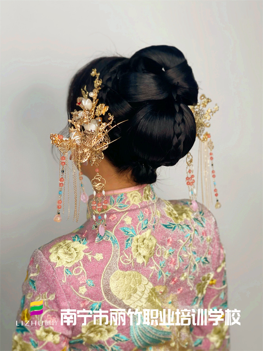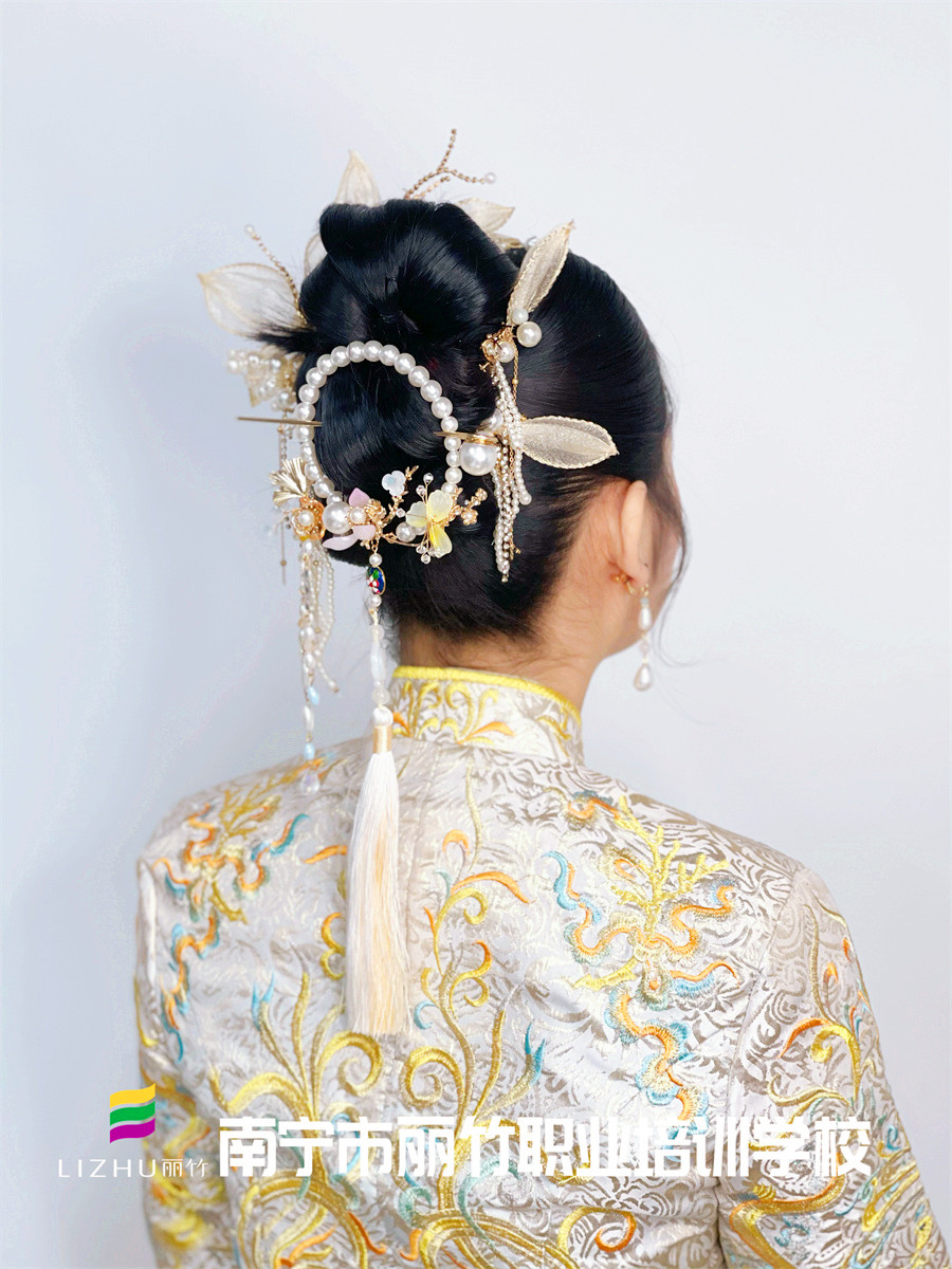 廣西中式新娘發(fā)型培訓(xùn)、廣西化妝扎發(fā)培訓(xùn):“卷,扭,包”,這3種手法在秀禾發(fā)型的運(yùn)用中尤為突出。趕緊和我們一起去看看廣西化妝盤(pán)發(fā)學(xué)校課堂上學(xué)員們的中式新娘發(fā)型作品吧!想在廣西學(xué)秀禾發(fā)型?想知道廣西學(xué)盤(pán)發(fā)哪家好?歡迎到麗竹學(xué)校參觀試聽(tīng)!