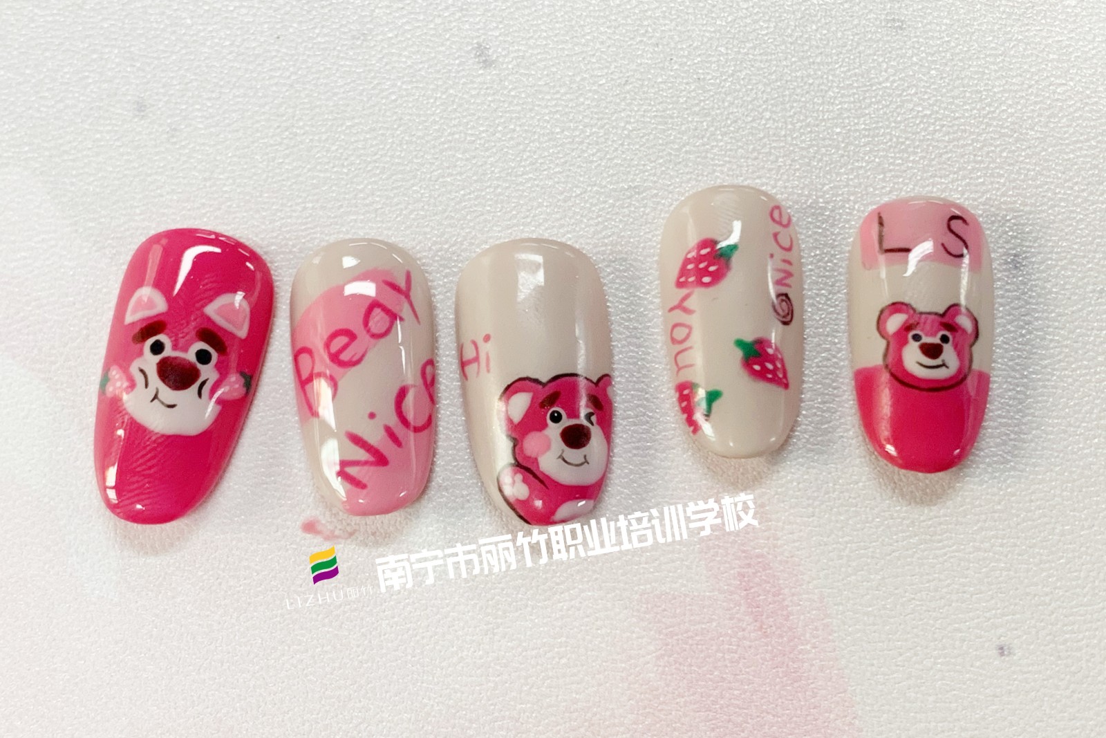 南寧學(xué)美甲款式、南寧培訓(xùn)美甲師:讓我們短暫忘掉世俗的煩惱,將你的童心未泯繪于“指”山,去創(chuàng)造屬于你的天馬行空!一起來看看南寧美甲學(xué)校的卡通系列美甲吧!每個(gè)人的童趣都不一樣,也許你的童趣更富色彩,如果是這樣,不妨也像南寧美甲造型培訓(xùn)-南寧美甲培訓(xùn)班的學(xué)員們一樣動(dòng)手將它們繪制成美甲作品吧!