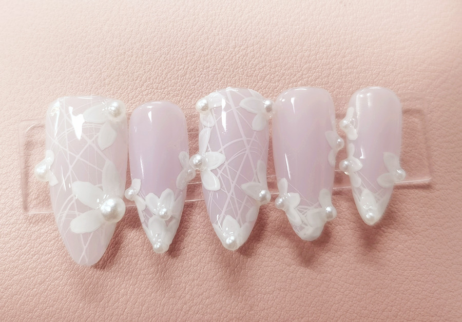 南寧美甲學(xué)校一共有幾個(gè)?請(qǐng)看麗竹美甲培訓(xùn)班學(xué)員作品---珍珠飾品美甲