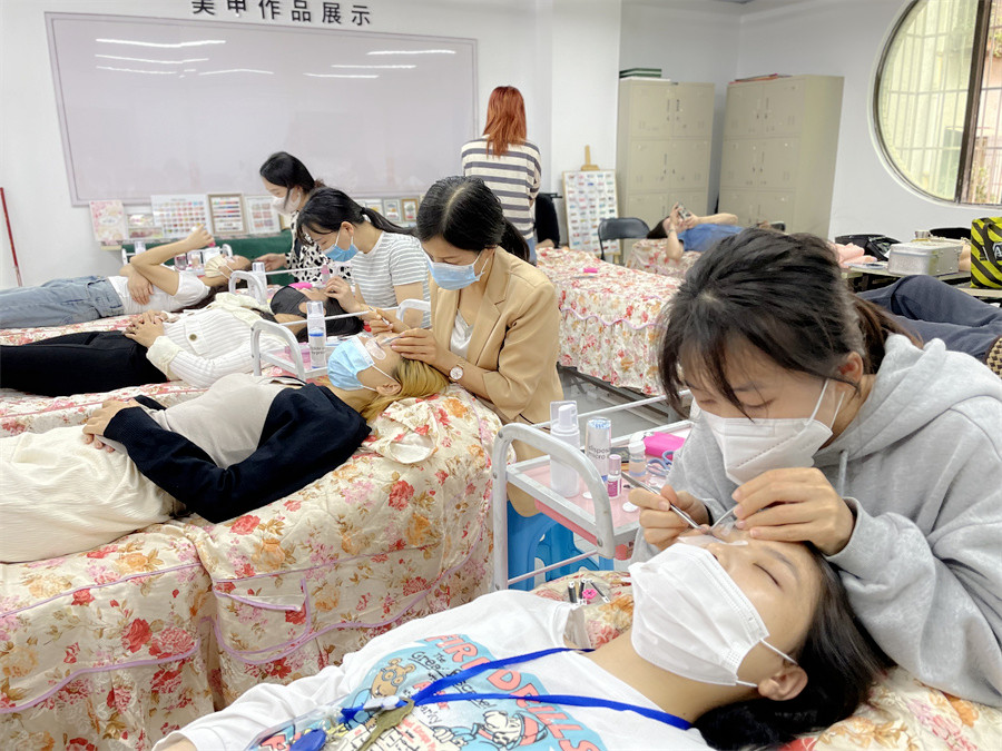 南寧學嫁接睫毛技術-麗竹美睫培訓班學員進行課堂練習