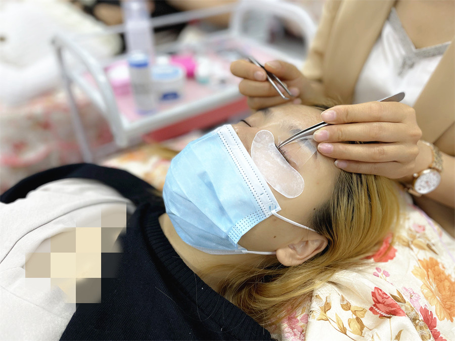 南寧美睫嫁接睫毛培訓-麗竹美睫培訓班學員真人實操練習