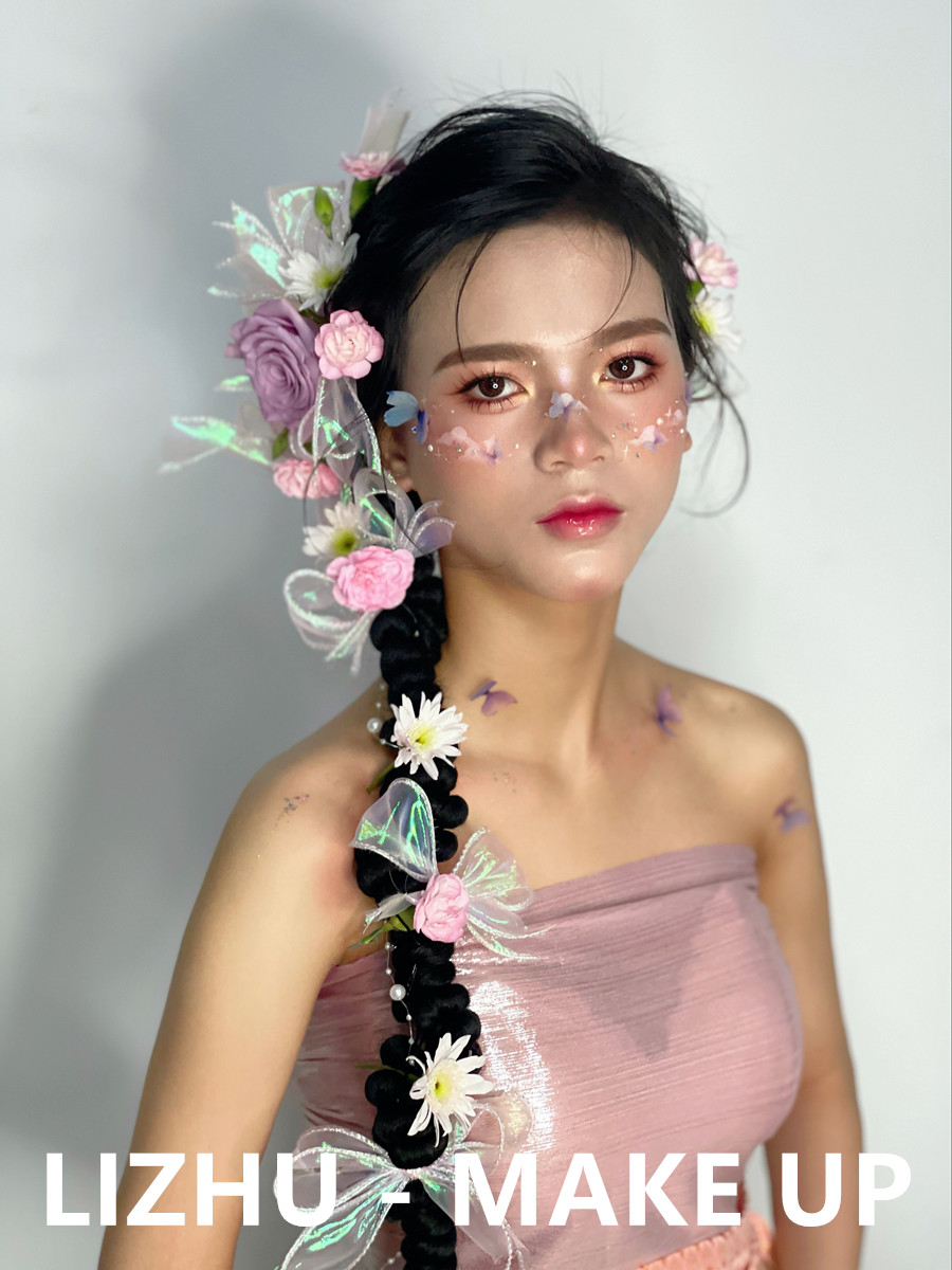 廣西影樓彩妝培訓(xùn)、廣西彩妝造型學(xué)校作品---哈尼族造型。鮮花滿頭,臉部?jī)深a被鮮花和用彩繪點(diǎn)綴,呈現(xiàn)出若隱若現(xiàn)宛如世外桃園之感。粉嫩果凍唇妝打造,配以甜蜜少女眼妝,在穿著當(dāng)?shù)靥厣b,仙氣靈動(dòng)哈尼族公主造型躍于眼前。要是你想在廣西學(xué)彩妝寫真,想到廣西影樓彩妝培訓(xùn)班學(xué)習(xí),想知道廣西化妝學(xué)校多少錢?不如來(lái)參加麗竹周年慶典報(bào)讀...