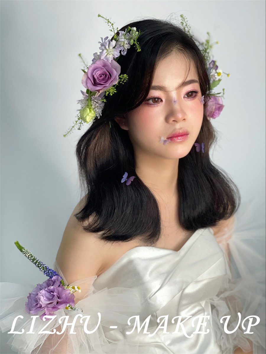 南寧學(xué)新娘造型哪里好?請(qǐng)看麗竹化妝學(xué)校作品---清新鮮花新娘(三)