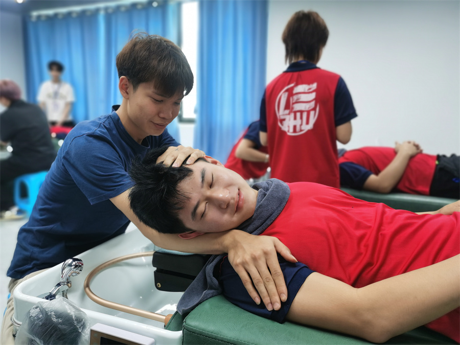 南寧學(xué)洗頭、南寧美發(fā)洗頭培訓(xùn):很多人在沒(méi)有來(lái)到南寧美發(fā)專業(yè)學(xué)校進(jìn)行學(xué)習(xí)的時(shí)候,都覺(jué)得洗頭其實(shí)是一件很簡(jiǎn)單的事情。畢竟,洗頭我們基本每天都在進(jìn)行。但真正的洗頭并不是我們?nèi)粘?吹胶筒僮鞯哪菢印D敲?,美發(fā)洗護(hù)學(xué)什么內(nèi)容?不如就和我們一起走進(jìn)南寧美發(fā)洗護(hù)培訓(xùn)班課堂實(shí)訓(xùn),看看學(xué)員們都在進(jìn)行哪些洗護(hù)練習(xí)吧!