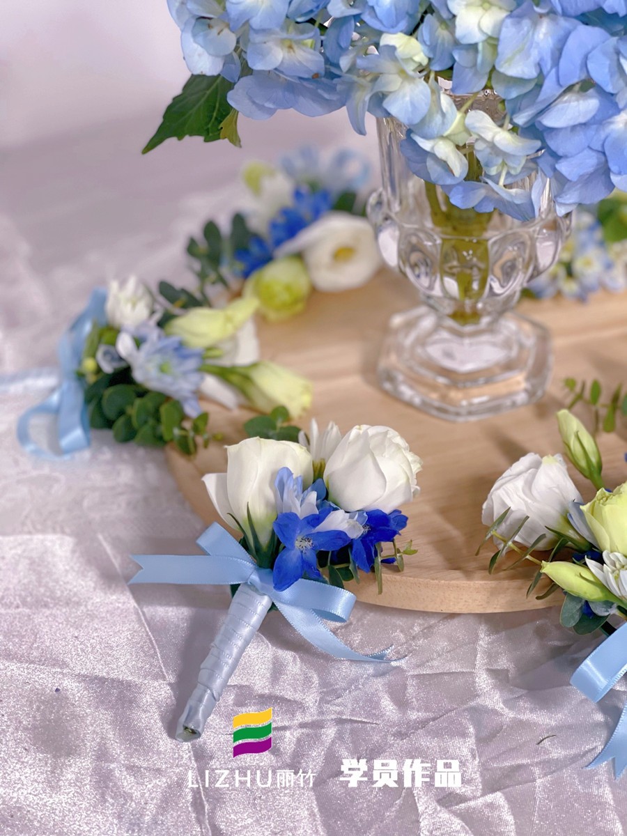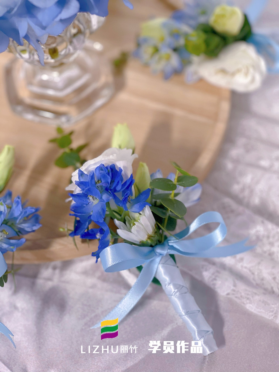 而在剛結(jié)束的南寧花藝學(xué)校-麗竹花藝學(xué)校胸花課程上,學(xué)員們根據(jù)現(xiàn)有的花材制作了藍(lán)色清新胸花,和我們一起聽(tīng)聽(tīng)她們制作的方法吧!