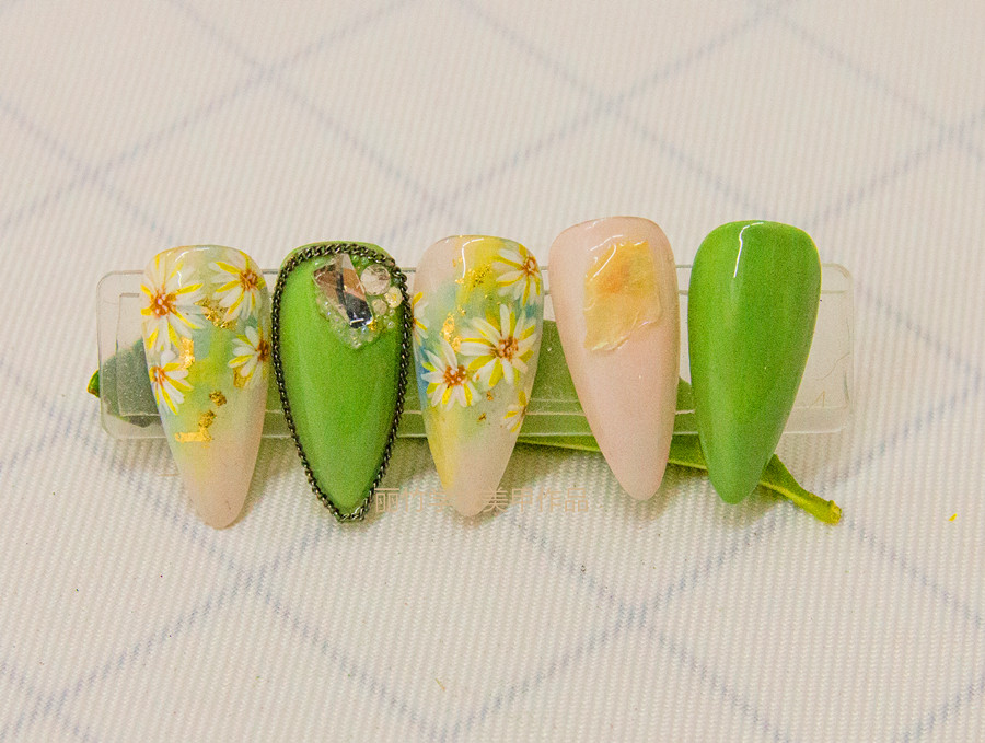 南寧美甲進(jìn)修,麗竹美甲培訓(xùn)班作品---彩繪小雛菊美甲