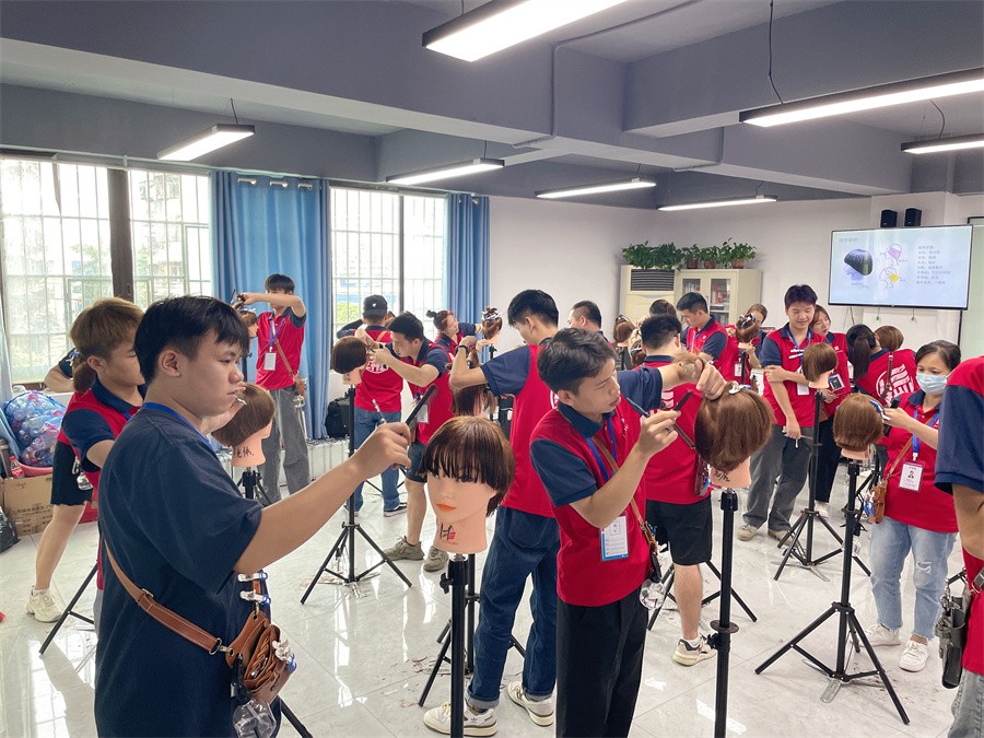 南寧美發(fā)基礎培訓,美發(fā)基礎班學員練習剪發(fā)站姿,修剪動作