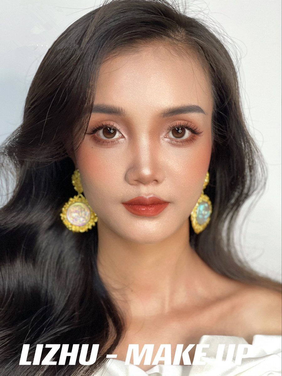 腮紅和唇妝采用同色系,起到承上啟下相互呼應(yīng)的作用。發(fā)型采用靈動流暢的披發(fā)造型,使得整個妝面的打造更具有魅惑特點(diǎn),彰顯出了濃顏系的泰式妝容。