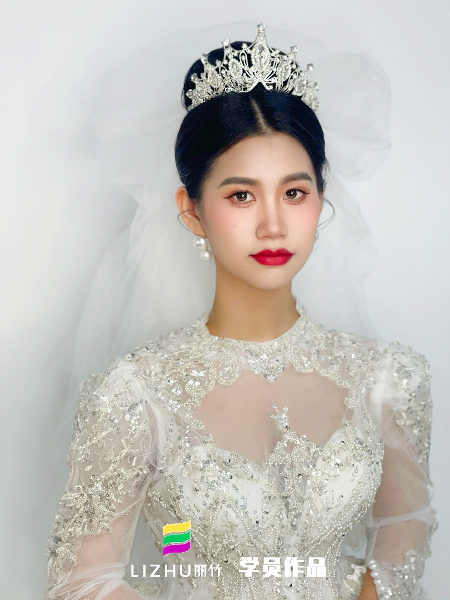 廣西新娘化妝培訓(xùn)、廣西化妝新娘短期班(麗竹新娘彩妝)作品---婚禮新娘造型:赫本風復(fù)古氣質(zhì)高盤發(fā),溫柔透凈妝容素雅精致。珍珠鉆石服飾與配飾,打造永恒的經(jīng)典之美,讓新娘美出新的高度。想知道廣西哪里可以學(xué)新娘化妝?或是想知道廣西新娘化妝培訓(xùn)哪家好?廣西新娘化妝學(xué)校-南寧市麗竹職業(yè)培訓(xùn)學(xué)校(麗竹學(xué)校)化妝專業(yè),業(yè)實力與高口碑...