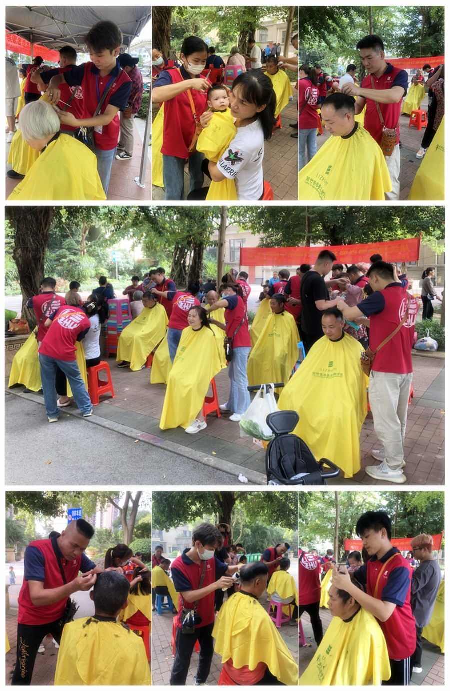 2023年10月24日,在南寧美發(fā)學(xué)校學(xué)理發(fā)的同學(xué)們在老師的帶領(lǐng)下,為恒大翡翠華庭小區(qū)的居民進(jìn)行公益理發(fā)?;顒硬环执笮?,只要用心盡力去做, 溫暖便會送到?;顒咏Y(jié)束后,同學(xué)們精湛的理發(fā)技術(shù)得到了居民們的大力稱贊。