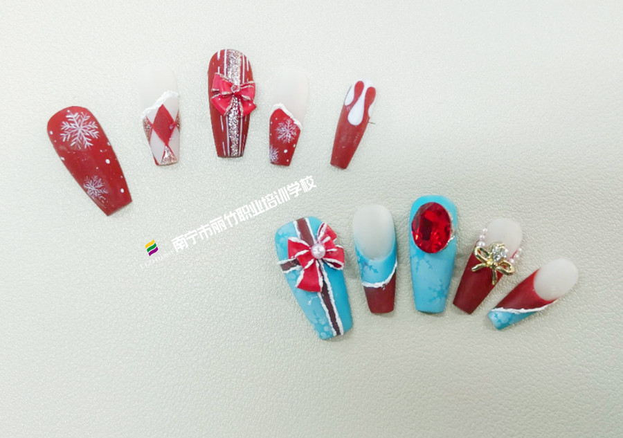 廣西美甲教育、廣西美甲培訓(xùn)中心:說(shuō)起圣誕節(jié)主題美甲的元素,不如現(xiàn)在就像廣西南寧美甲款式進(jìn)修班(麗竹美甲款式進(jìn)修)的同學(xué)們一樣,在甲面上畫(huà)出自己喜歡的圣誕美甲元素吧!美甲是一門受用一 生的技術(shù),如果你想在廣西學(xué)美甲技能,想知道廣西美甲培訓(xùn)哪里學(xué)費(fèi)便宜?那麗竹學(xué)校正在進(jìn)行的招生優(yōu)惠活動(dòng)千萬(wàn)不要錯(cuò)過(guò)啦。