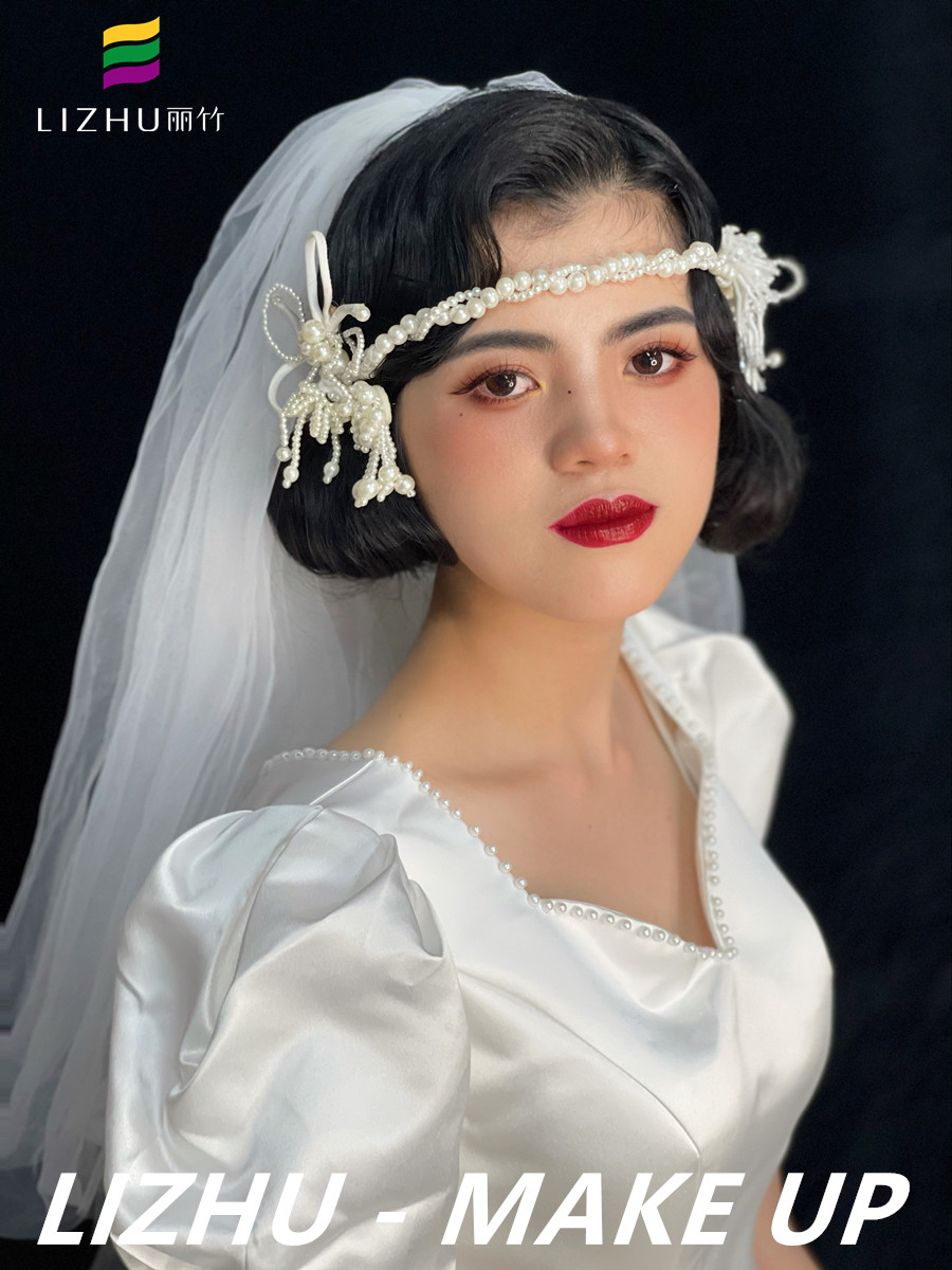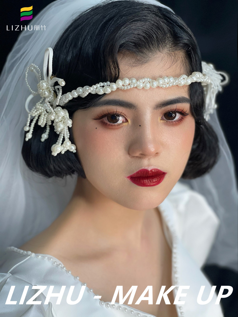 南寧化妝寫真攝影、南寧化妝彩妝(麗竹化妝造型)作品---法式復(fù)古造型:極具復(fù)浪漫的法式波紋短發(fā),自然野生眉與精致妝容,前額佩戴珍珠項鏈飾品,瞬間點亮整個復(fù)古造型。如果你想在南寧學(xué)化妝拍照,想知道南寧化妝在哪里學(xué)?歡迎大家趁著南寧影樓化妝攝影學(xué)校(麗竹學(xué)校)正在進行春季招生報名優(yōu)惠活動,趕緊聯(lián)系我們報名吧!
