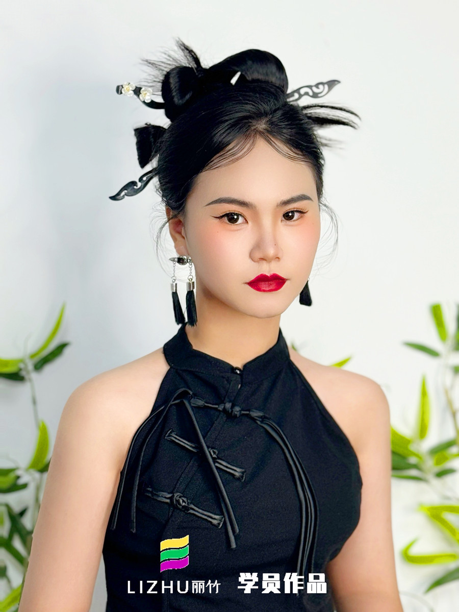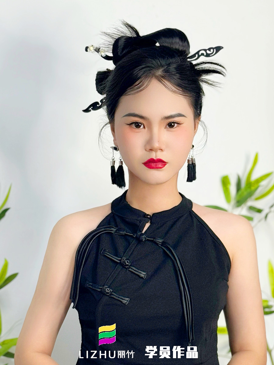 零基礎彩妝教學 南寧影樓彩妝培訓學員(梁雅露)作品---新中式造型。如果你本就對化妝感興趣,或是想提升技術,建議你可以趁著南寧化妝彩妝培訓機構-南寧彩妝寫真學校(麗竹彩妝寫真學校)真在進行招生優(yōu)惠活動,聯(lián)系我們報名吧!