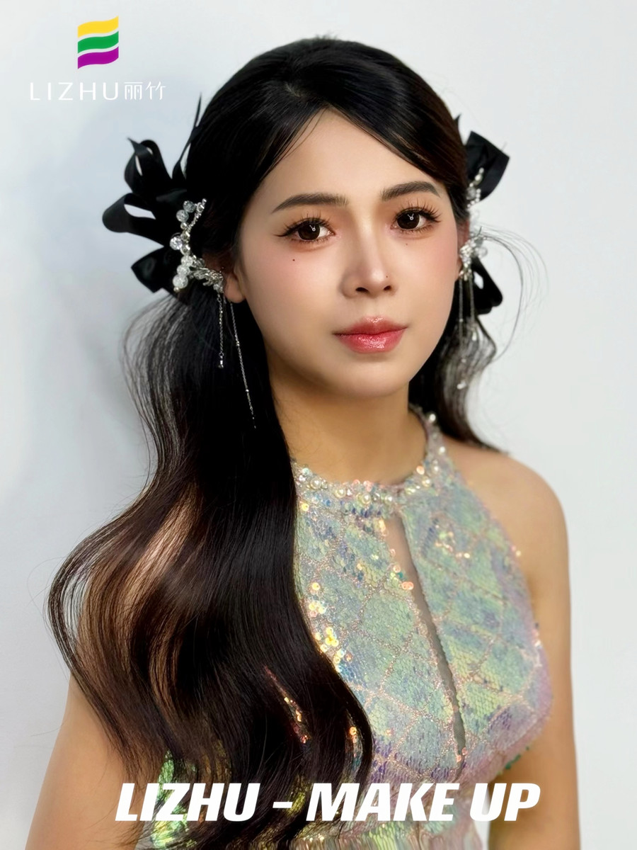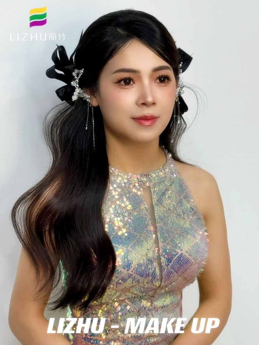 廣西化妝造型培訓(xùn)、廣西化妝彩妝(麗竹化妝造型培訓(xùn))作品:禮服造型:自然清透的甜美妝容,蝴蝶結(jié)夾耳韓式披發(fā),七彩色彩的亮片禮服,猶如人魚公主般夢(mèng)幻。如果你只想學(xué)習(xí)一些日常用到的化妝手法,建議你可以關(guān)注廣西化妝形象學(xué)校-廣西化妝短期培訓(xùn)班推出的《個(gè)人形象化妝班》的課程哦!