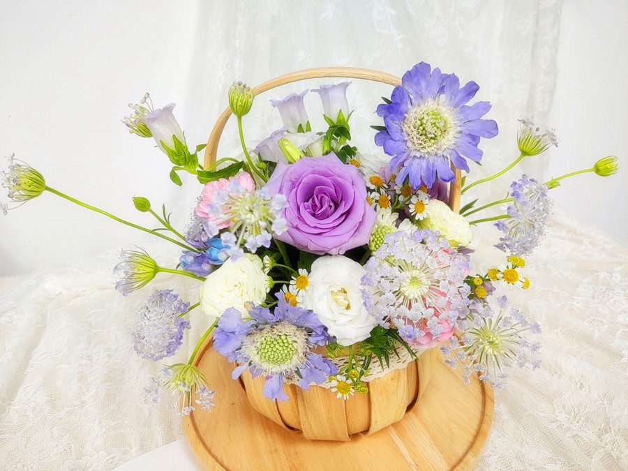 而在今天的廣西花藝課堂中,玉老師正在為同學們示范自然風手提花籃的操作步驟。老師示范手法結束后,讓我們一起走進廣西花藝培訓班里去看看同學們的表現(xiàn)吧!