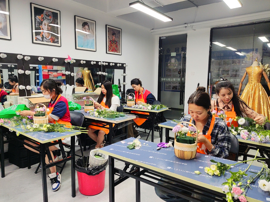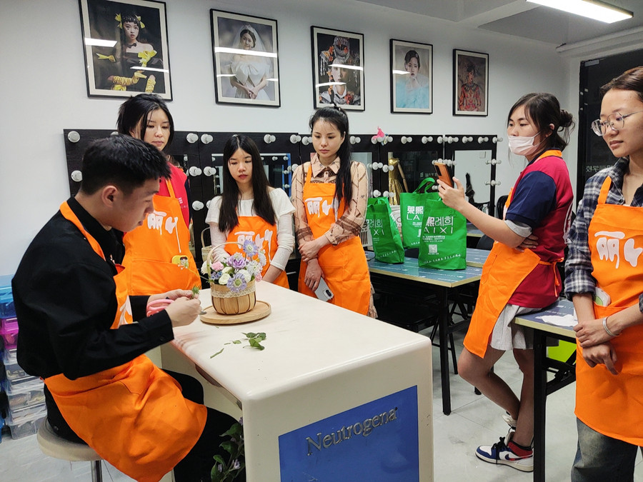 廣西花藝師培訓學校(麗竹花藝學校)的同學們從零基礎學花藝開始,已經能夠熟練掌握認識了花材工具及花的種類、色彩搭配、花材保養(yǎng)、花型搭配規(guī)則(理論知識),單枝花束、立體花盒等知識。