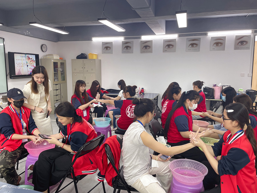 因?yàn)橹挥幸浑p健康的雙手,才能讓美甲款式的精美度放大化。下面,就讓我們通過南寧美甲技術(shù)培訓(xùn)學(xué)校(麗竹美甲技術(shù)培訓(xùn))里同學(xué)們正在進(jìn)行的手部護(hù)理實(shí)操,了解下美甲手部護(hù)理的好處吧。