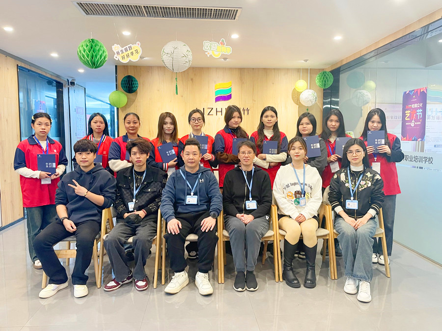 美甲畢業(yè)學員與部分領導老師合影