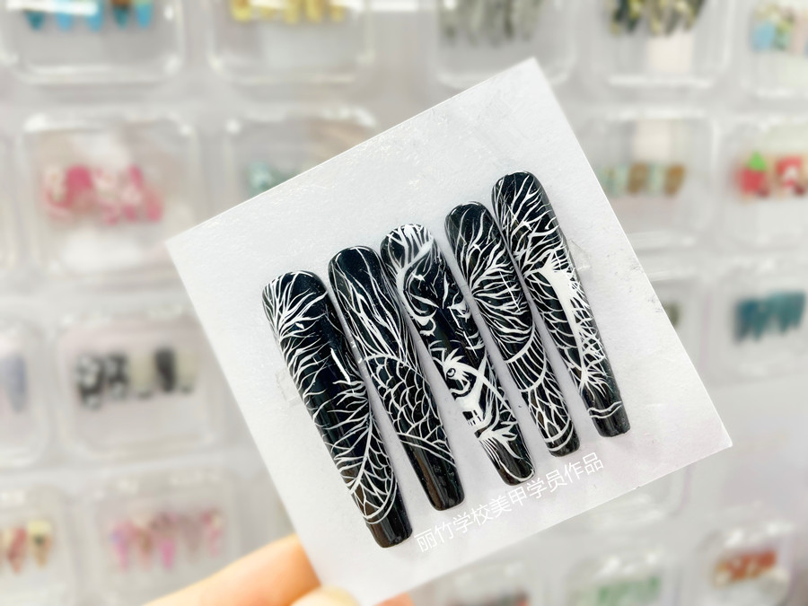 南寧美甲專業(yè)、南寧美甲學(xué)習:零基礎(chǔ)美甲教學(xué)(學(xué)員作品)--- 國風線條美甲!想知道南寧學(xué)美甲哪里專業(yè)?南寧美甲職業(yè)培訓(xùn)推薦你可以到麗竹學(xué)校美甲專業(yè)去看看。課程內(nèi)容與潮流接軌,實用性與創(chuàng)意性兼具,畢業(yè)推薦工作,創(chuàng)業(yè)有扶持,歡迎了解!