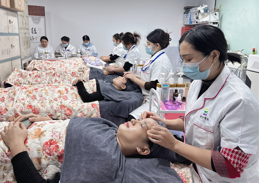 面部護(hù)理包含洗臉,按摩,撥筋,刮(sha)痧,敷膜,艾灸的項目,通過假頭模練習(xí),再到真人實操,兩者需要相互結(jié)合才能更好的發(fā)揮作用。