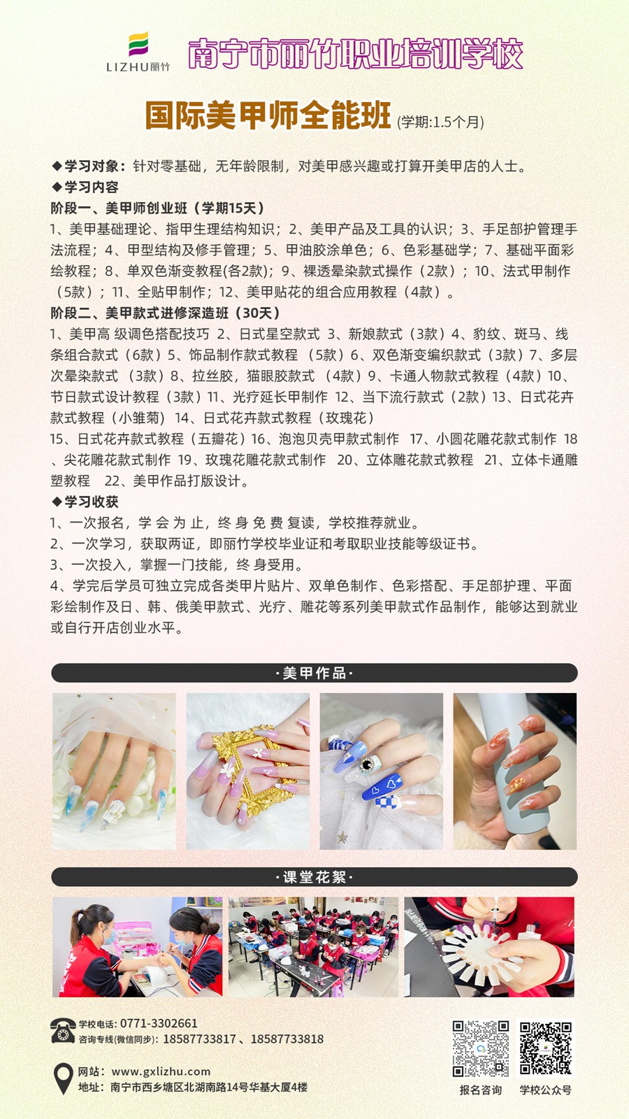 如果你本來就對(duì)美甲技術(shù)感興趣,或是如果你本有美甲基礎(chǔ),只想找一家專業(yè)美甲學(xué)校提升美甲技術(shù),那么不妨到麗竹麗竹學(xué)校美甲進(jìn)修班看看吧!無論你是哪種需求,相信我們的招生老師總能幫到你選擇合適的課程。