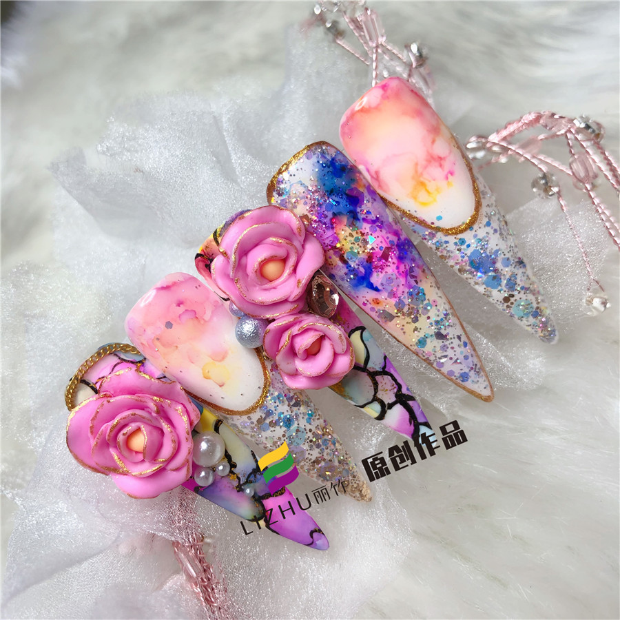 麗竹美甲作品:“花”樣延長(zhǎng)美甲