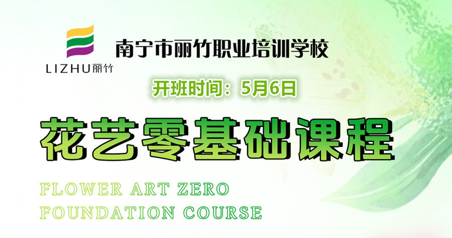 除了綠植的相關知識外,如果你還想在廣西學花藝,但是不知道廣西花藝學校有哪些?麗竹學校《花藝零基礎課程》新一期課程將在5月6日開班,教學內(nèi)容傳統(tǒng)技術與流行技巧相結(jié)合,帶你暢游浪漫花海。