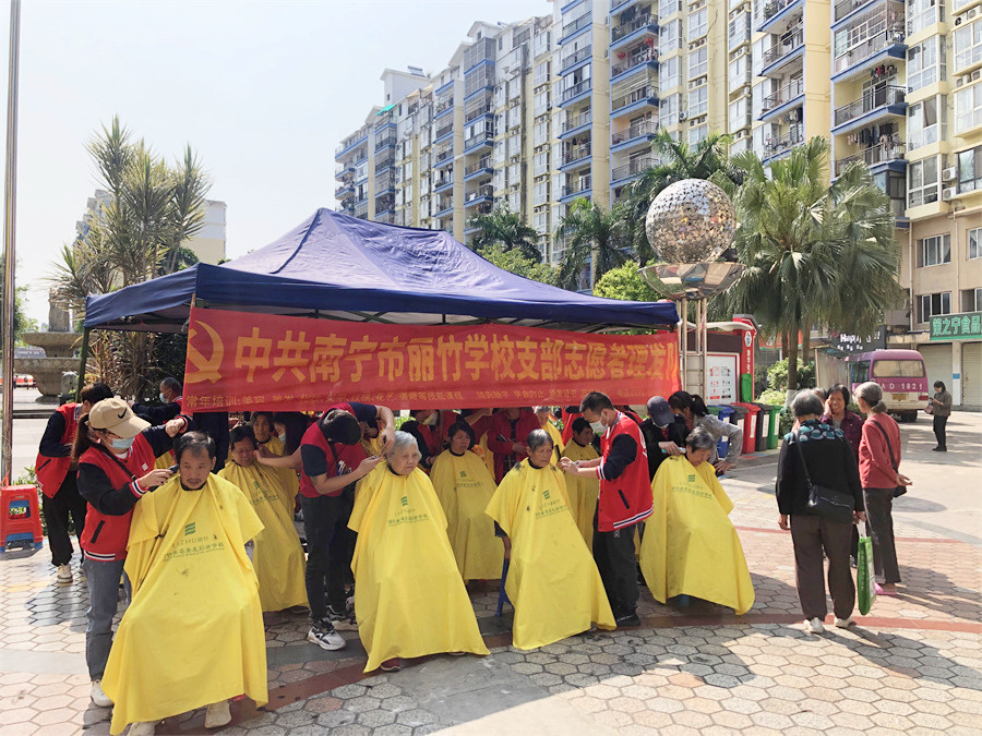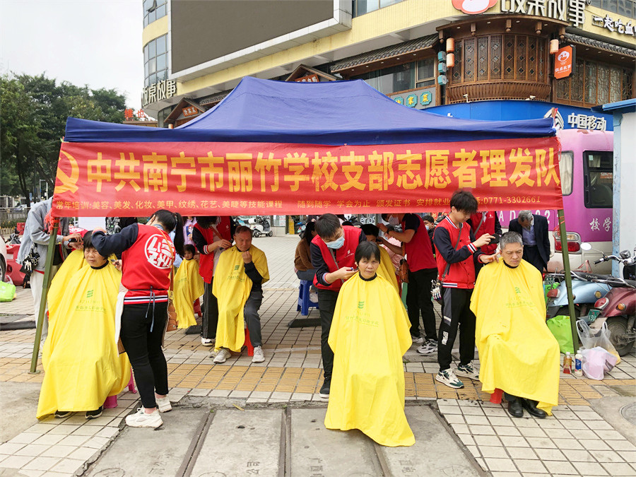 廣西南寧市美發(fā)實(shí)踐活動、廣西美發(fā)學(xué)校社區(qū)義剪、麗竹學(xué)校美發(fā)公益活動:在群眾們一聲聲地感謝聲中,廣西老牌美發(fā)師學(xué)校-中共南寧市麗竹學(xué)校支部志愿者理發(fā)隊(duì)4月公益活動圓滿結(jié)束啦如果你想學(xué)美發(fā)在廣西,想知道廣西學(xué)美發(fā)哪家好?麗竹學(xué)校口碑與專業(yè)并存,聲名在外,歡迎大家到校咨詢,參觀,報(bào)名!