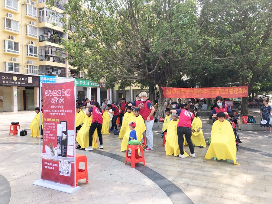 2023年7月23日,南寧美發(fā)志愿者服務(wù)隊(duì)為澳華社區(qū)居民義務(wù)美發(fā)