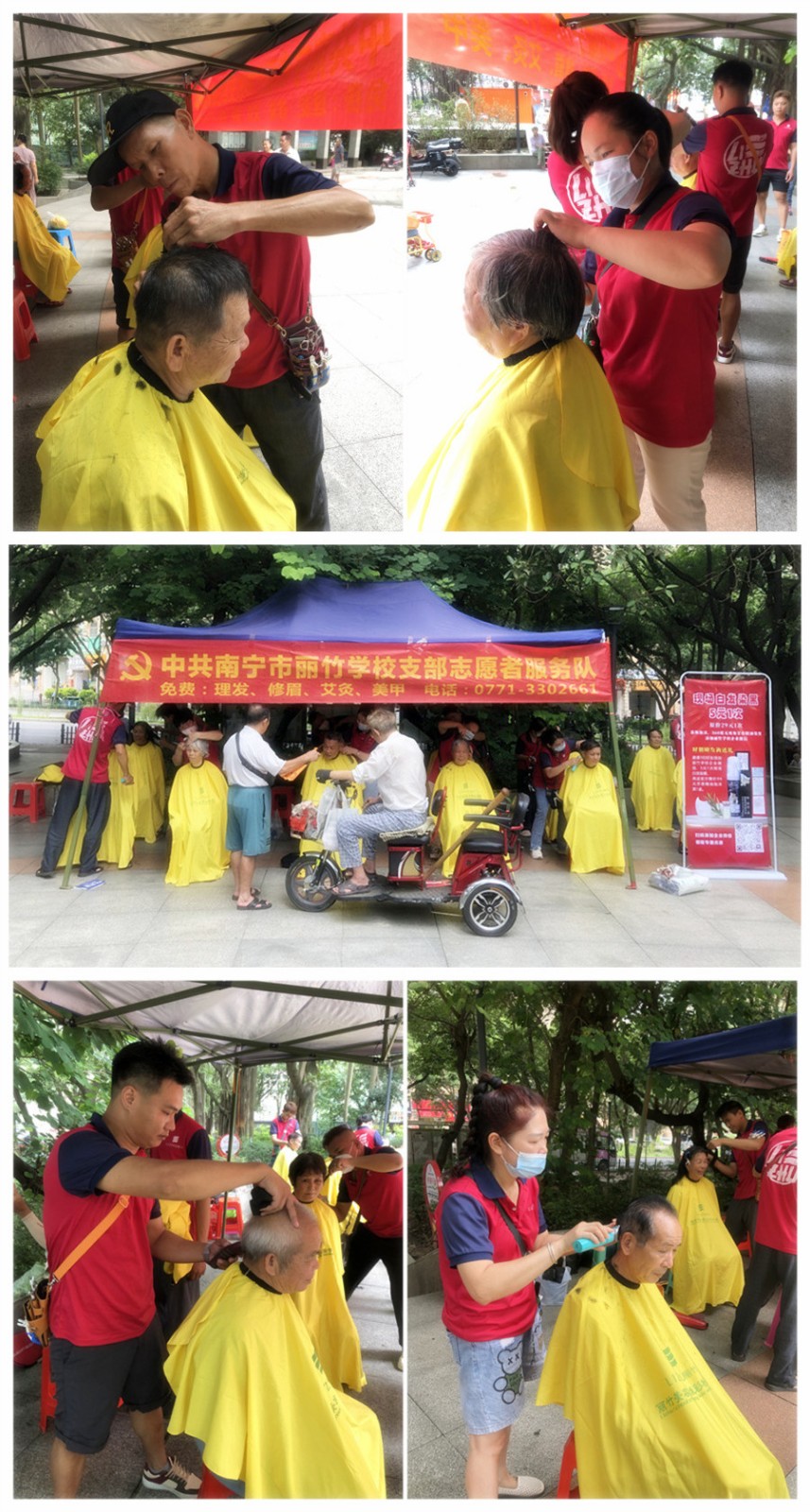 廣西美發(fā)培訓(xùn)機(jī)構(gòu)、小區(qū)免費(fèi)理發(fā)公益活動(dòng):廣西美發(fā)職業(yè)技術(shù)學(xué)校-廣西美發(fā)理發(fā)班-廣西美發(fā)志愿者服務(wù)隊(duì)來到多個(gè)社區(qū),為這里的居民們提供免費(fèi)理發(fā)活動(dòng)。在日后的教學(xué)活動(dòng)中,麗竹學(xué)校也將繼續(xù)在黨支部的領(lǐng)導(dǎo)下,號(hào)召全校師生以先進(jìn)為榜樣,繼承和發(fā)揚(yáng)雷鋒精神,讓同學(xué)之間多一份友愛,讓校園多一份溫暖,讓雷鋒精神常駐校園。