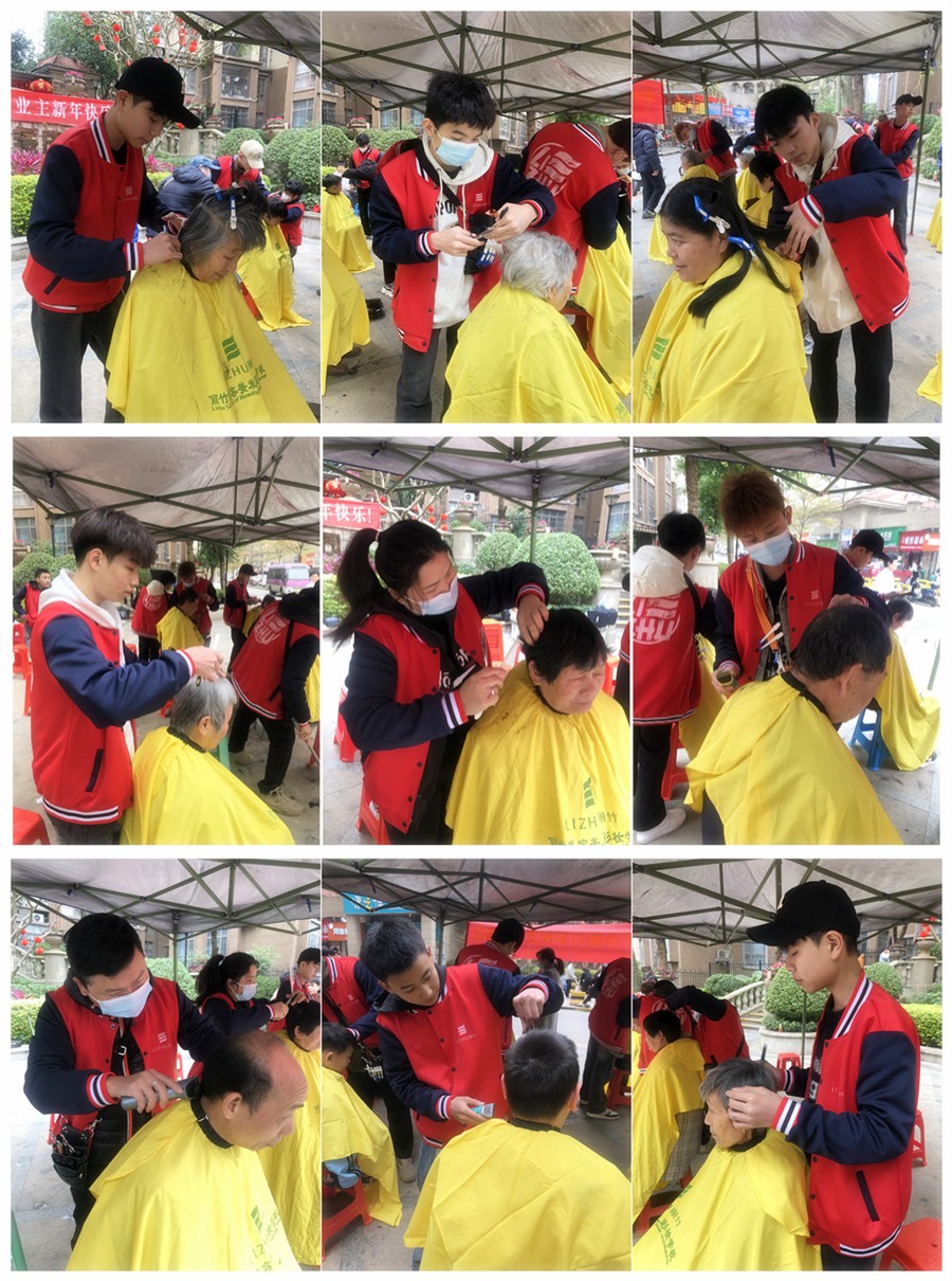 廣西理發(fā)實踐、廣西美發(fā)社會活動免費:3月初始,廣西理發(fā)師學(xué)校(麗竹美發(fā)學(xué)校)的志愿者們在黃老師的帶領(lǐng)下,不畏嚴(yán)寒,來到普羅旺斯小區(qū)為居民們送上了暖冬的慰問,在中心廣場上舉行免費理發(fā)活動。