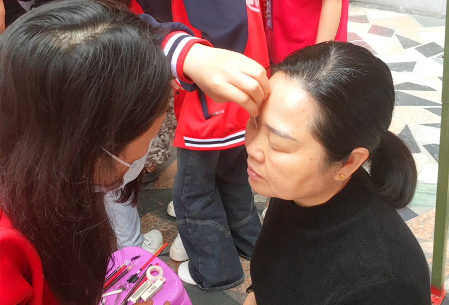 廣西化妝公益、廣西化妝社會實踐:乘著“學雷鋒月”的微風,廣西化妝師培訓班的同學們在玉老師的帶領下在學校門口進行了免費化妝暨外出實踐教學活動。接下來,就和我們一起看看廣西化妝學校外出教學(麗竹化妝學校)今天都都學習了哪些內(nèi)容吧!