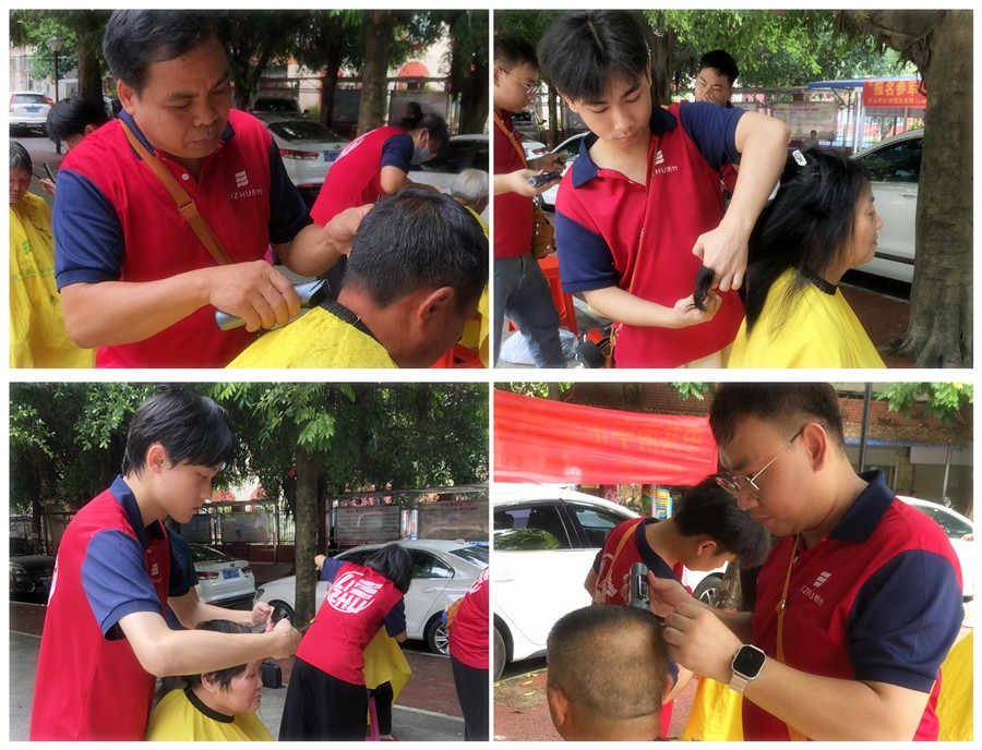廣西美發(fā)義剪、廣西美發(fā)剪發(fā):隨著氣溫的日益升高,南寧市氣象中心也發(fā)布了高溫預警。面對滾滾襲來的熱浪,廣西美發(fā)剪發(fā)職業(yè)學校(麗竹美發(fā)剪發(fā)職業(yè)學校)的同學們在老師的帶領下,來到各大小區(qū)進行外出教學實踐之余,也為居民送去夏日清涼,免費為大家進行理發(fā)服務。