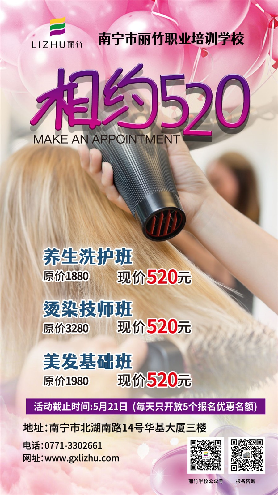 麗竹學(xué)校常年教授美發(fā)、美容、化妝、美甲、紋繡、美睫花藝氣球等熱門時(shí)尚專業(yè)、考證、就業(yè)為一體的職業(yè)培訓(xùn)學(xué)校!手把手專業(yè)教學(xué),安排創(chuàng)業(yè)和就業(yè)扶持,學(xué)費(fèi)親民,都是你值得信賴的美業(yè)培訓(xùn)機(jī)構(gòu)。