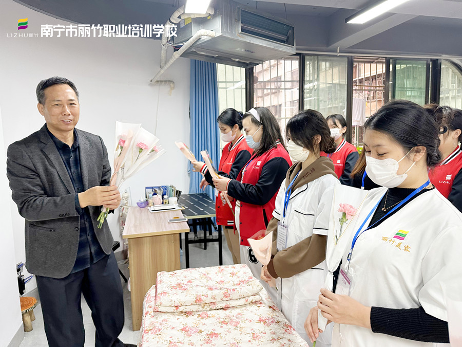 特別的浪漫,今天屬于南寧美容師學(xué)校、南寧美甲師學(xué)校、南寧化妝師學(xué)校、南寧美甲師學(xué)??蓯郏利惖男∠膳畟?!3·8女神節(jié),特別的愛給特別的你,美麗的花給美麗的你!南寧市美業(yè)職業(yè)培訓(xùn)學(xué)校-麗竹學(xué)校祝福各位小仙女們都能活出自己的美,就像手中的花一樣綻放。