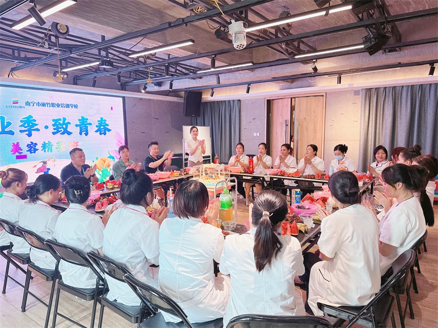 畢業(yè)座談會、廣西美容培訓班畢業(yè):畢業(yè)之際,廣西南寧美容專業(yè)學校-廣西美容技師班-麗竹學校美容專業(yè)以“畢業(yè)季·致青春”為主題,舉行了一場溫馨的畢業(yè)座談會,回憶和過往,暢談未來。祝愿所有從廣西美容專業(yè)培訓畢業(yè)的麗竹學子都能以渺小啟程,以偉大結(jié)束。