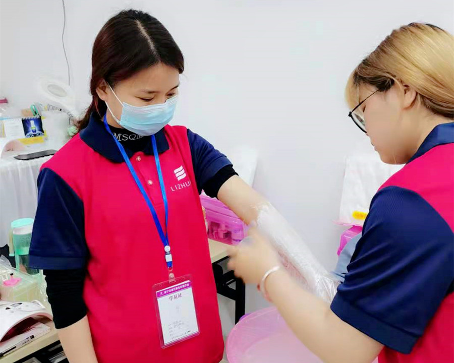 麗竹學校美甲專業(yè)-學員陸慧玲進行美甲手部護理練習